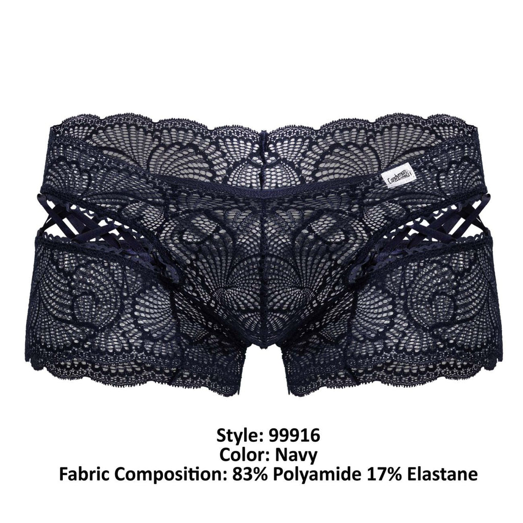Turn heads with this luxurious lace trunk featuring intricate floral patterns and playful criss-cross detailing. Designed for men who appreciate style and comfort, it combines a flattering cut with a soft, breathable fabric that feels as good as it looks.